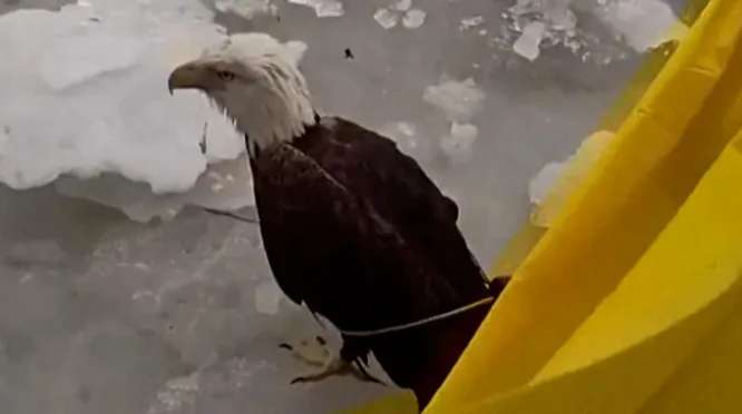 Detik-detik Polisi New York Selamatkan Elang Botak Terluka di Sungai Hudson yang Membeku