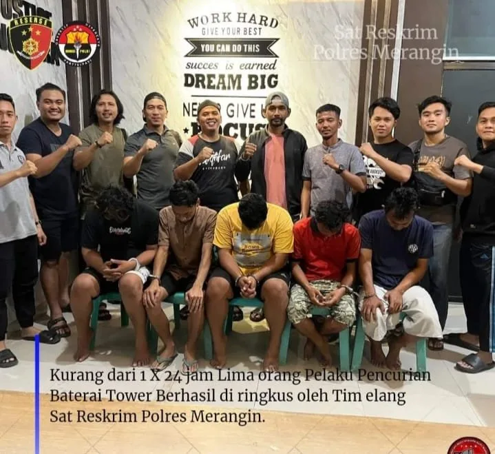 orasi.id/, Merangin – Komplotan pelaku pencurian baterai tower milik PT Telkomsel berhasil diringkus Satuan Reserse Kriminal Polres Merangin pada Jumat, 26 Januari 2024 sekira pukul 23.30 WIB.