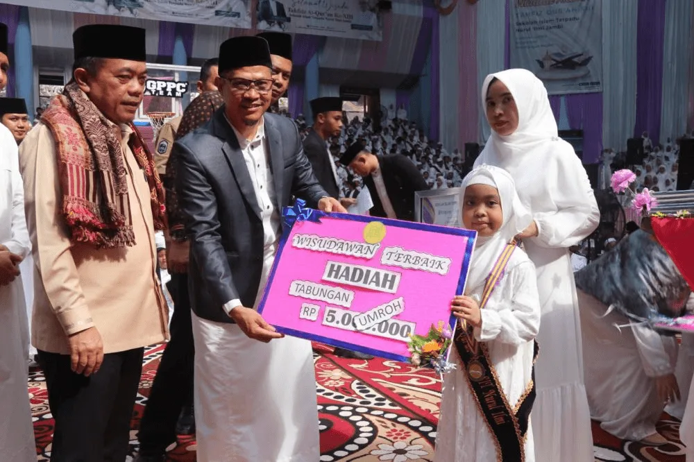 Jambi – Gubernur Jambi Dr. H. Al Haris, S.Sos., MH memberikan hadiah umroh gratis kepada 2 orang guru dan 3 siswa Sekolah Islam Terpadu (SIT) Nurul ‘Ilmi Jambi.