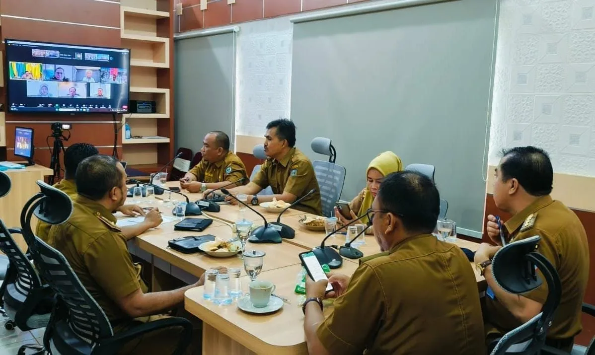 Tampak hadir mendampingi Pj bupati pada rakor pengendalian inflasi daerah bersama Kemendagri secara zoom meeting itu, Kadis Ketahanan Pangan Fauziah, Sekretaris Dinas Tanaman Pangan dan Hortikultura Mujiburahman dan Kadis Peternakan dan Perkebunan Hendri Widodo. (*)