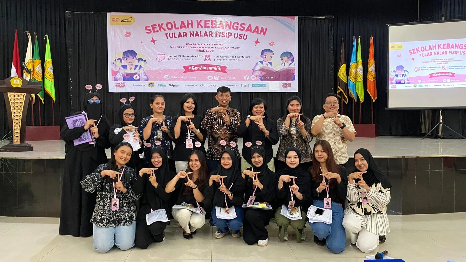 Medan – Masih dalam mempersiapkan Gen Z sebagai pemilih pemula, Tular Nalar – Mafindo kembali bersama Ilmu Komunikasi FISIP USU adakan “Sekolah Kebangsaan” di Universitas Sari Mutiara Indonesia. Menjelang pilkada, masih banyak informasi hoaks yang juga beredar di media online maupun di media sosial. Hal ini membutuhkan perhatian lebih dari masyarakat khususnya dalam penerimaan informasi ditengah euforia pemilu. Semarak pemilu yang saat ini masih hangat menjadi perbincangan di setiap kalangan menjadi momentum bagi Tular Nalar – Mafindo bersama Ilmu Komunikasi FISIP USU untuk mempersiapkan gen Z bijak memilih dan kawal demokrasi.