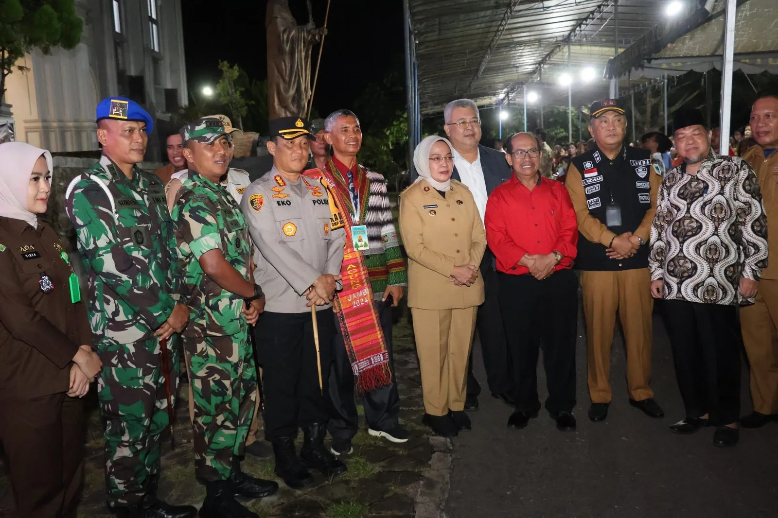 Jambi – Peninjauan Ibadah Malam Natal 2024 dan Peninjauan Pos Pengamanan dan Pos Pelayanan Ops Lilin 2024 Polresta Jambi. Titik Kumpul keberangkatan bertempat di Rumah Dinas Walikota Jambi pada pukul 19.00 wib, Kepala Kepolisian Resor Kota Jambi Kombes Pol Eko Wahyudi, S.I.K, M.H dampingi Sri Purwaningsih S.H.,M.A.P selaku Pj. Walikota Jambi bersama Unsur Forum Koordinasi Pimpinan Daerah (Forkopimda) Melaksanakan Peninjauan Ibadah Malam Natal 2024 dan Peninjauan Pos Pengamanan dan Pos Pelayanan Ops Lilin 2024 dalam rangka Operasi Lilin 2024. Selasa malam 24 Desember 2025.