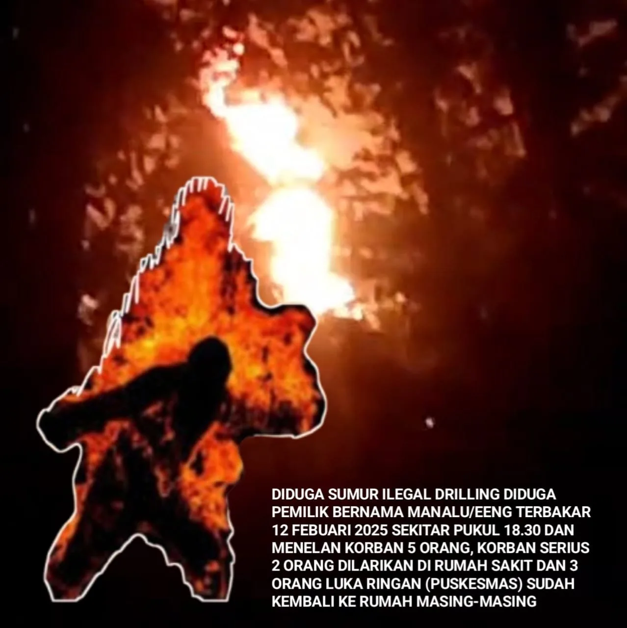 Jambi – Terdengar, Kebakaran yang disebabkan sumur ilegal driling di jebak, senami kabupaten batanghari terus memakan korban jiwa. Kali ini, rabu sekitar pukul 18.00 WIB 12 febuari 2025 kembali terjadi kebakaran yang makan 5 orang korban jiwa, 2 orang luka serius, 3 orang luka ringan. Kamis, (13/01/2025).