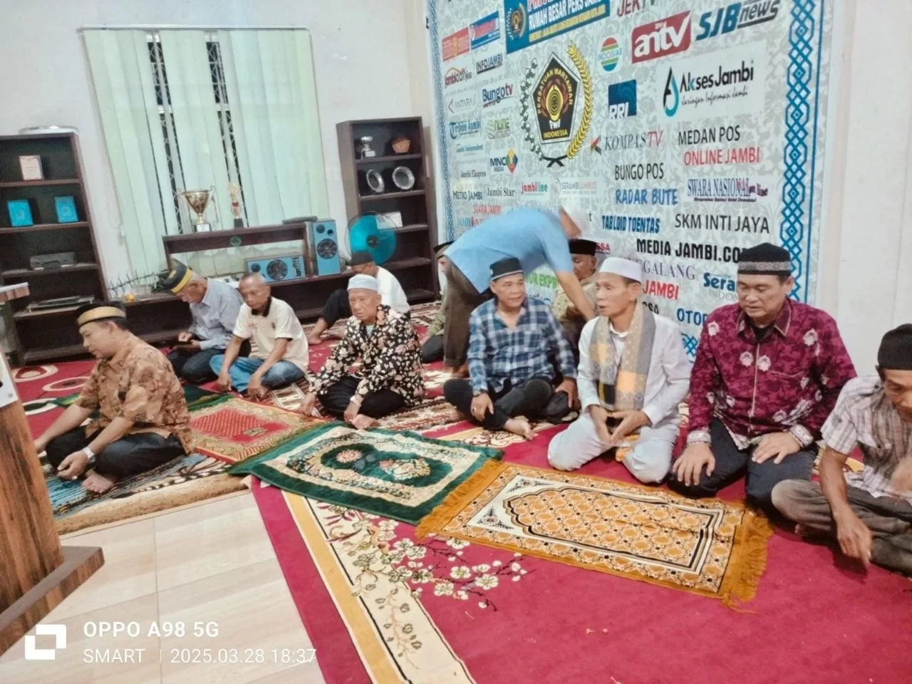 Usai bukber dilanjutkan shalat Maghrib berjamaah yang dipimpin (imam) Ketua Dewan Kehormatan PWI (DKP) Provinsi Jambi, Haji RS Edi Marpaung SH. MH.