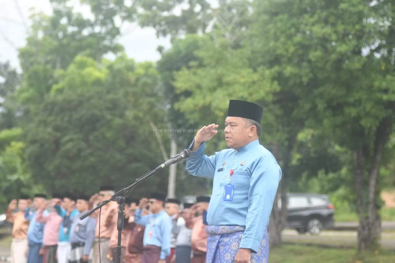 Muarojambi – Sekretaris Daerah (SEKDA) Muaro Jambi, Budhi Hartono, menjadi Inspektur Upacara Bendera pada peringatan Hari Pendidikan Nasional Tahun 2025 di Lapangan Pendopo Kantor Bupati Muaro Jambi. Bukit Cinto Kenang, Jumat (2/5/2025).