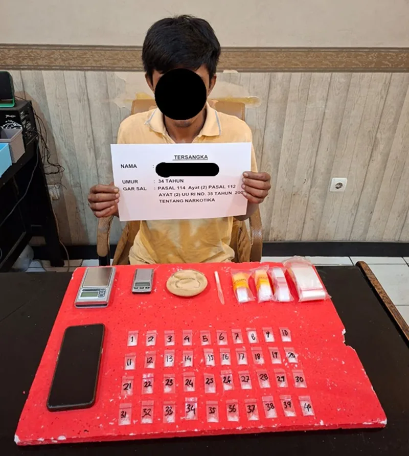 “Setelah dilakukan penggeledahan, ditemukan satu dompet kain warna coklat yang berisi 40 paket sabu siap edar,” ujar Ipda Deddy Haryadi.