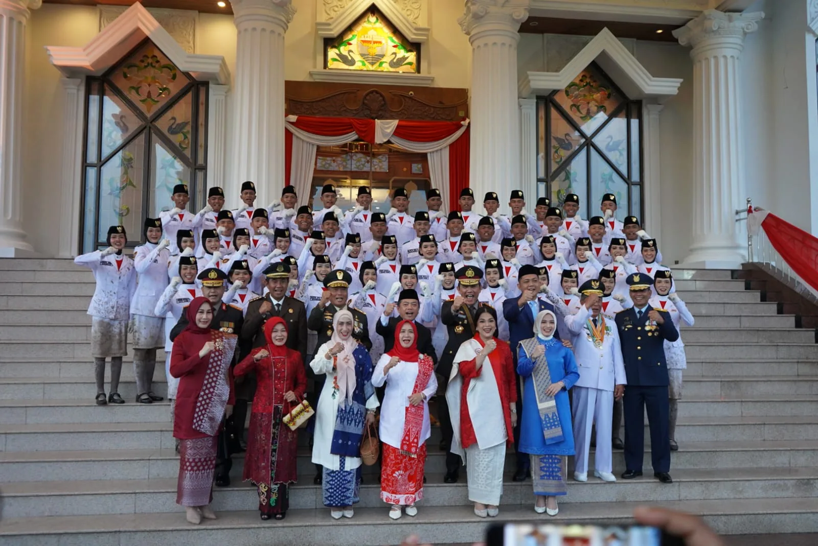 “Apresiasi yang luar biasa bagi adik-adik Paskibraka yang sudah menjalankan tugasnya dengan sangat baik dan sukses. Latihan mereka cukup lama dengan berbagai tantangan, mulai dari panas, hujan, hingga kondisi lapangan yang becek. Meski begitu, mereka tetap bersemangat dan menjalankan tugas dengan baik. Saya bangga dengan mereka,” ujar Gubernur Al Haris.