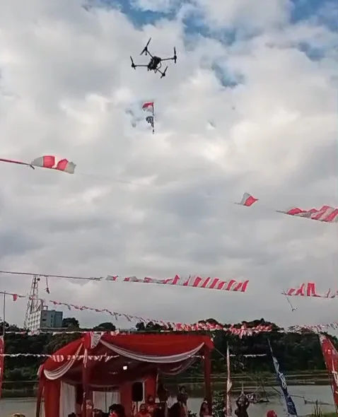Ditengah-tengah acara, panitia mengibarkan bendera merah putih dengan cara yang tidak biasa. Mereka mengibarkan bendera merah putih dengan menggunakan drone, yang kemudian diterbangkan diatas Danau Sipin. Warga sorak sorai menyaksikan bendera merah putih berkibar gagah diatas Danau Sipin, seraya menyanyikan lagu kebangsaan Indonesia Raya. (*)