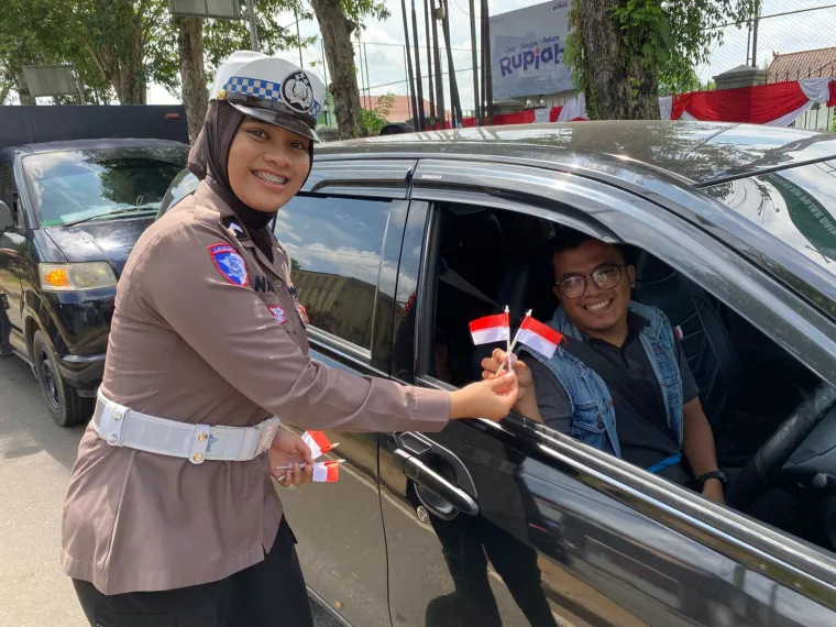 Momentum kemerdekaan ini kita manfaatkan untuk mengajak masyarakat mengibarkan bendera Merah Putih sekaligus menanamkan kesadaran tertib lalu lintas demi keselamatan bersama,” ujarnya.