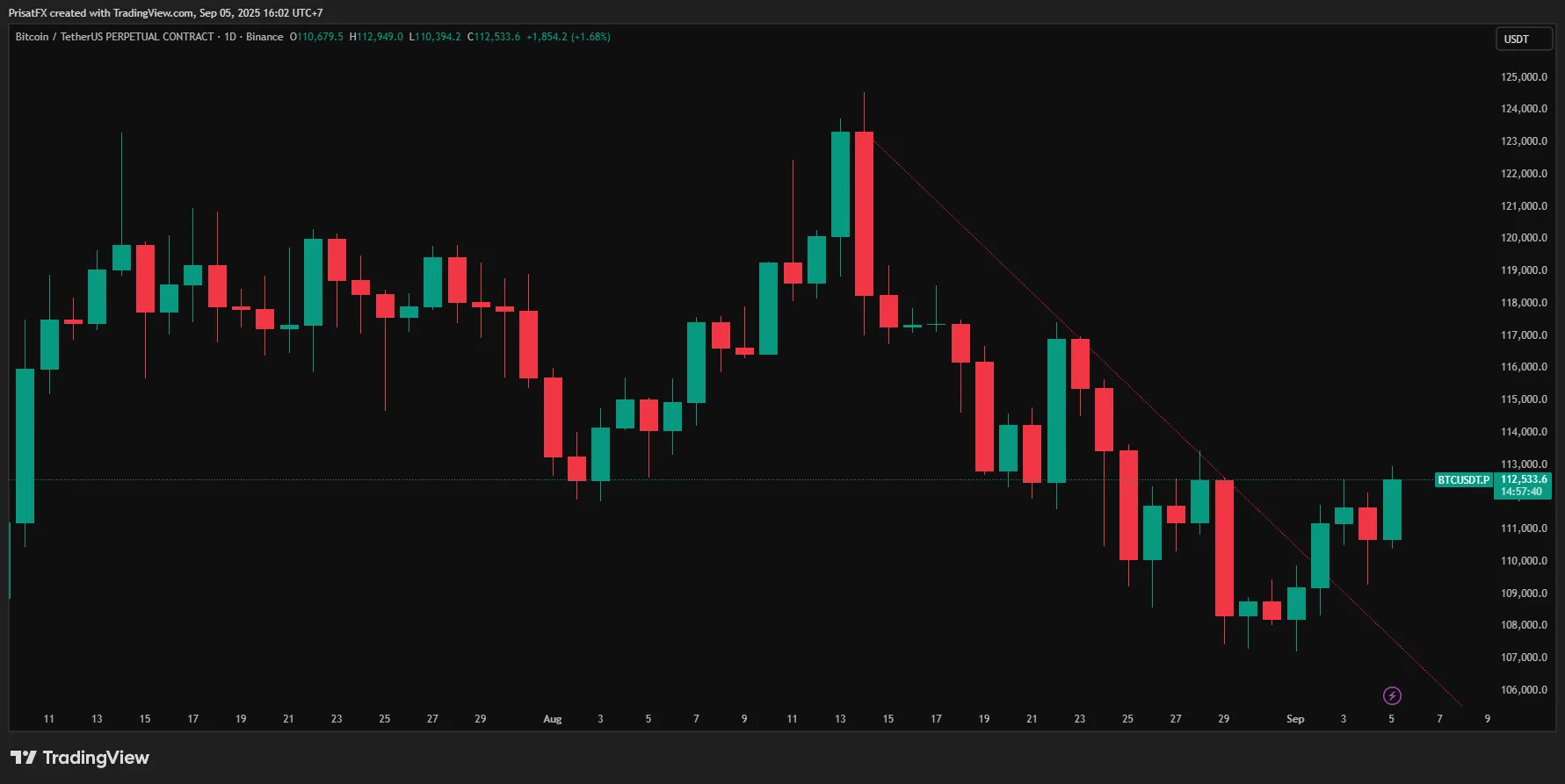 Bitcoin telah mengonfirmasi breakout. Daily close atau retest di area US$113.000 akan memastikan tren naik berlanjut,” tulisnya.