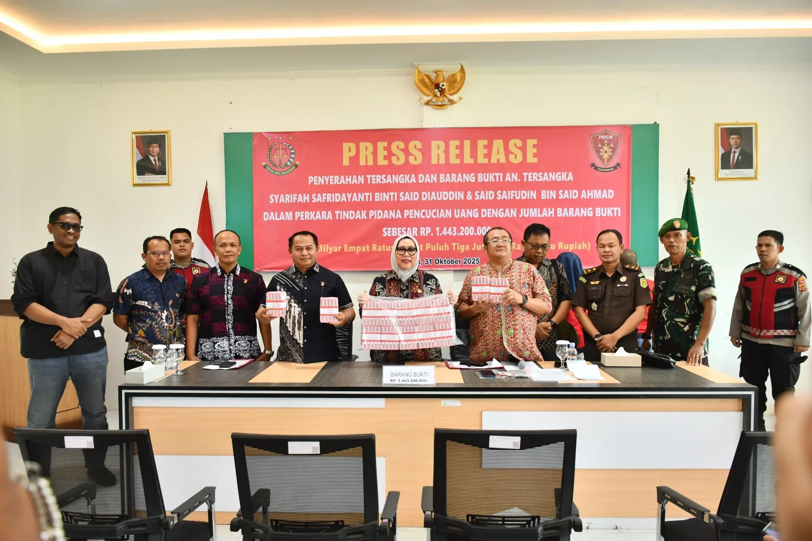 Jambi – Kejaksaan Negeri Jambi Menerima Pelimpahan  Perkara TPPU (Tindak Pidana Pencucian Uang) dengan tersangka Syarifah Safridayanti Binti Said Diauddin dan Said Saifuddin Bin Said Ahmad. Jumat tanggal 31 Oktober 2025 telah dilaksanakan Tahap II Penyerahan Tersangka dan barang bukti dari Penyidik Polda Jambi di Kejaksaan Negeri Jambi perkara atas nama tersangka Said Saifuddin Bin Said Ahmad dan Syarifah Safridayanti Binti Said Diauddin ini merupakan pengembangan perkara Tindak Pidana Pencucian Uang (TPPU) dari perkara narkotika dengan terdakwa Alton Bin Asrul Nurdin dalam perkara tersebut telah disidangkan di Pengadilan Negeri Jambi.