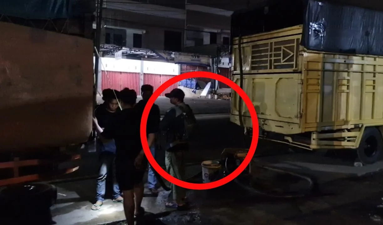 Dipertanyakan lebih lanjut soal aktivitas mereka, pria berbadan gempal tersebut nampak panik dan mengarahkan pada rekannya, yang sedang duduk menyendiri tak jauh dari mereka.