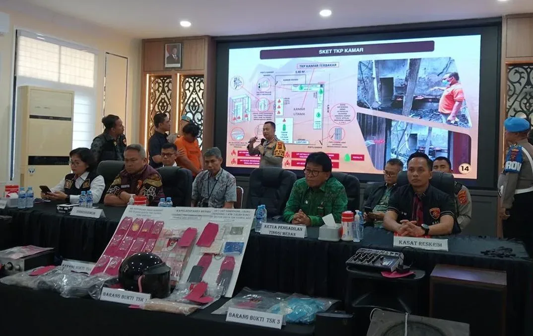 Jakarta — Satreskrim Polrestabes Medan mengungkap hasil penyidikan terkait kasus pembakaran rumah hakim Pengadilan Negeri Medan, Khamozaro Waruwu, yang terjadi di Kompleks Taman Harapan Indah, Jalan Pasar II, Kelurahan Tanjung Sari, Medan Selayang.