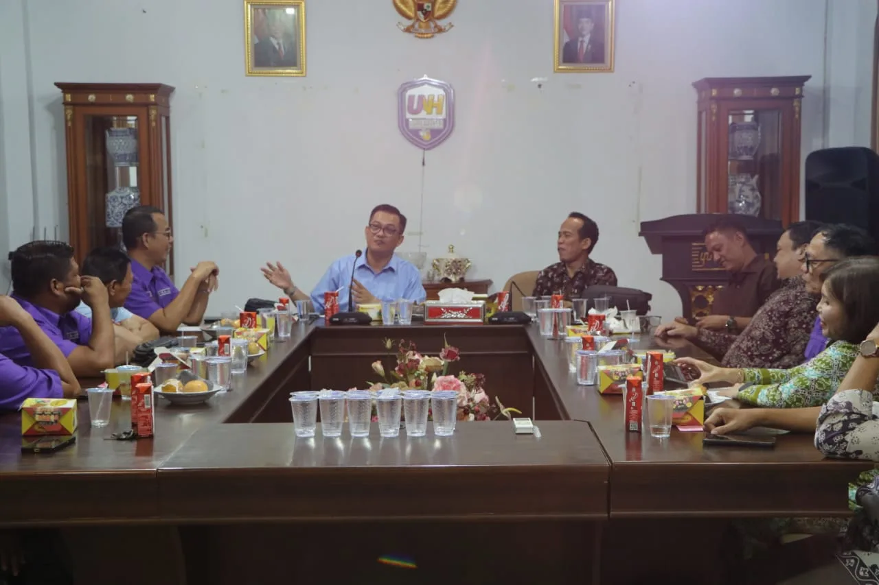 Rombongan IKA UNH disambut oleh Ketua Badan Pelaksana Harian (BPH) UNH, Ferdy SH, bersama jajaran dosen, staf struktural, dan Unit Penjaminan Mutu dalam pertemuan yang berlangsung di ruang rapat kampus.