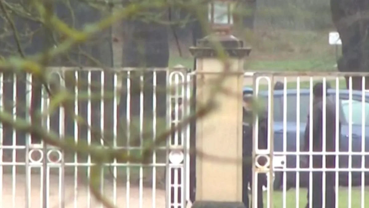Sejumlah kendaraan polisi terlihat berada di kediaman baru Andrew di Wood Farm saat proses penangkapan berlangsung.