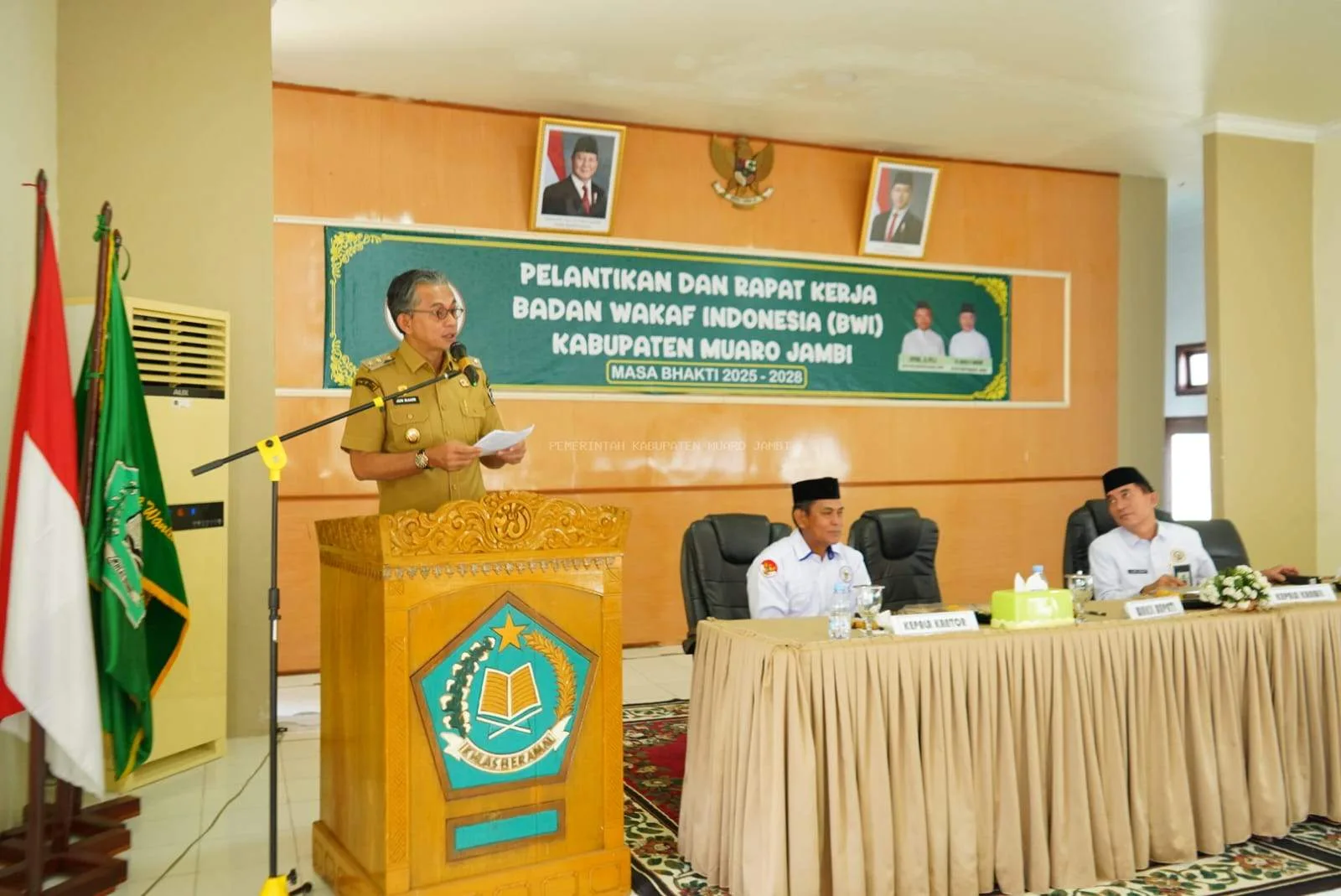 Dalam sambutannya, Wakil Bupati menyampaikan apresiasi atas terbentuknya kepengurusan BWI Kabupaten Muaro Jambi periode 2025–2028.