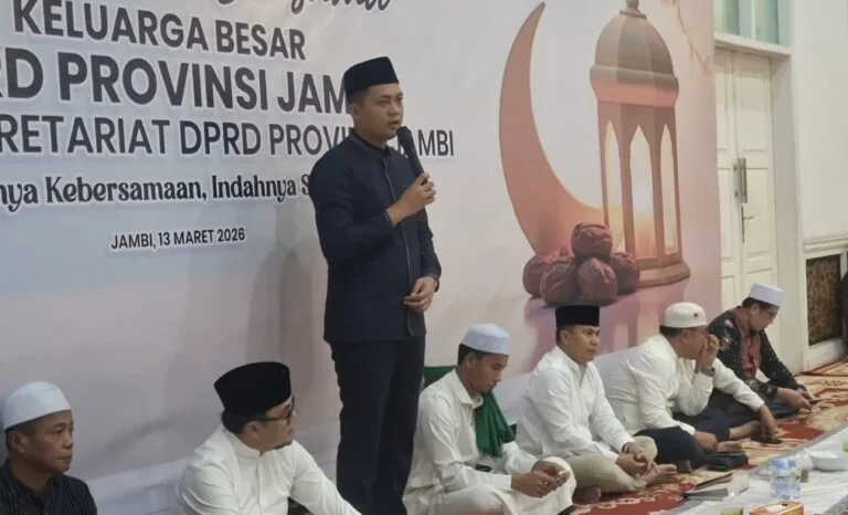 Jambi – Dewan Perwakilan Rakyat Daerah (DPRD) Provinsi Jambi menggelar buka puasa bersama dengan jajaran Sekretariat DPRD Provinsi Jambi, Jumat (13/3/2026). Acara yang berlangsung penuh keakraban ini menjadi momentum mempererat silaturahmi antara pimpinan, anggota dewan, dan pegawai sekretariat.