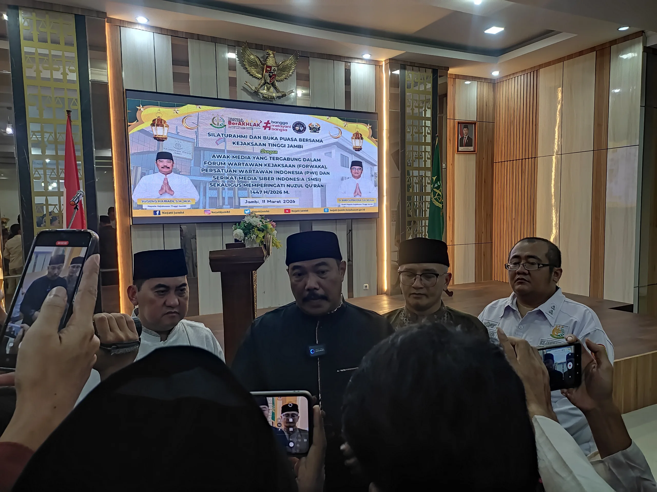 Kegiatan ini berlangsung di Ruang Aula Soeprapto lantai 4 gedung Kejaksaan Tinggi Jambi, di hadiri para pejabat dan staff Kejaksaan Tinggi Jambi serta sejumlah insan Pers mitra Kejati Jambi,(Rabu,11/03/2026).