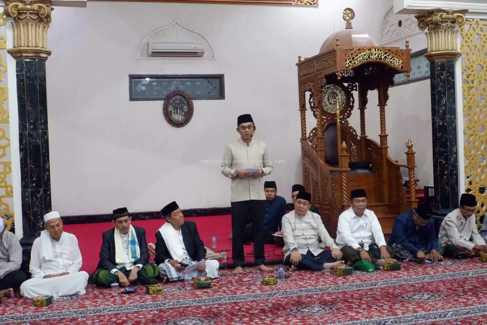 Mengawali sambutan resminya, Wakil Bupati atas nama pribadi, keluarga, dan Pemerintah Kabupaten Muaro Jambi juga menyampaikan ucapan selamat menunaikan ibadah puasa kepada seluruh jamaah yang hadir.