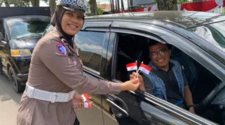 Sambut HUT RI ke – 80, Satlantas Polresta Jambi Berbagi Bendera Merah Putih ke Para Pengendara